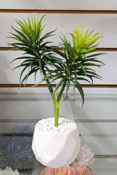 Maceta c/hojas de bambu alto 16 cm |