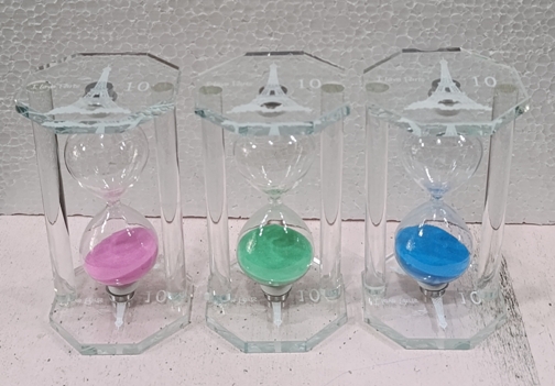 Reloj arena cuadrada chico 6*3.4*10.2cm mediano 7.3*4*12cm grande 10.5*5.2*15cm surtido colores |
